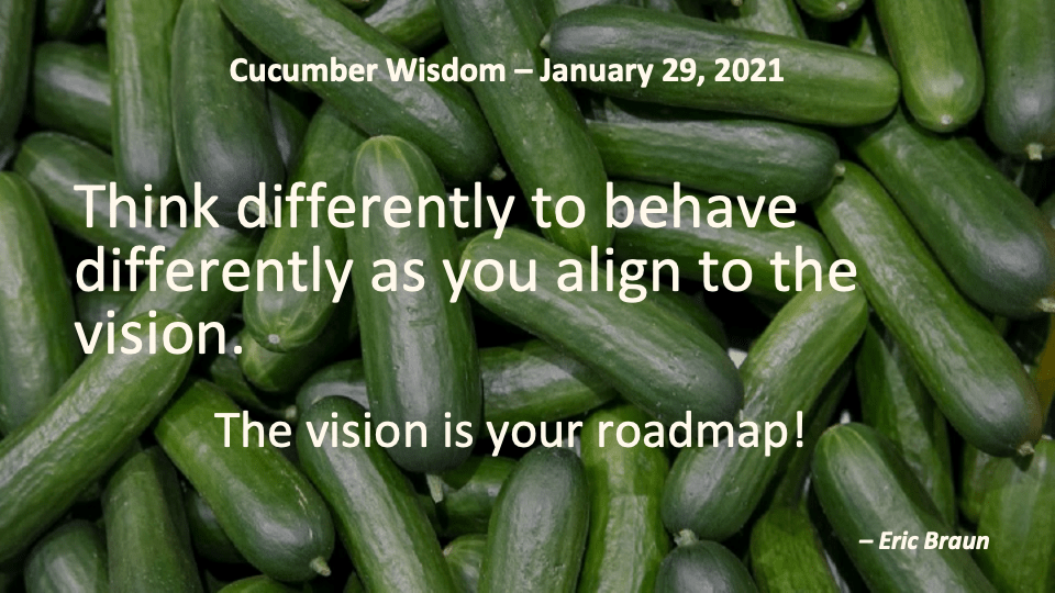 January 29, 2021October 14, 2021 ericbraunx Think differently to behave differently Think differently to behave differently as you align to the vision.The vision is your roadmap! Share this:TweetLike Loading... Related